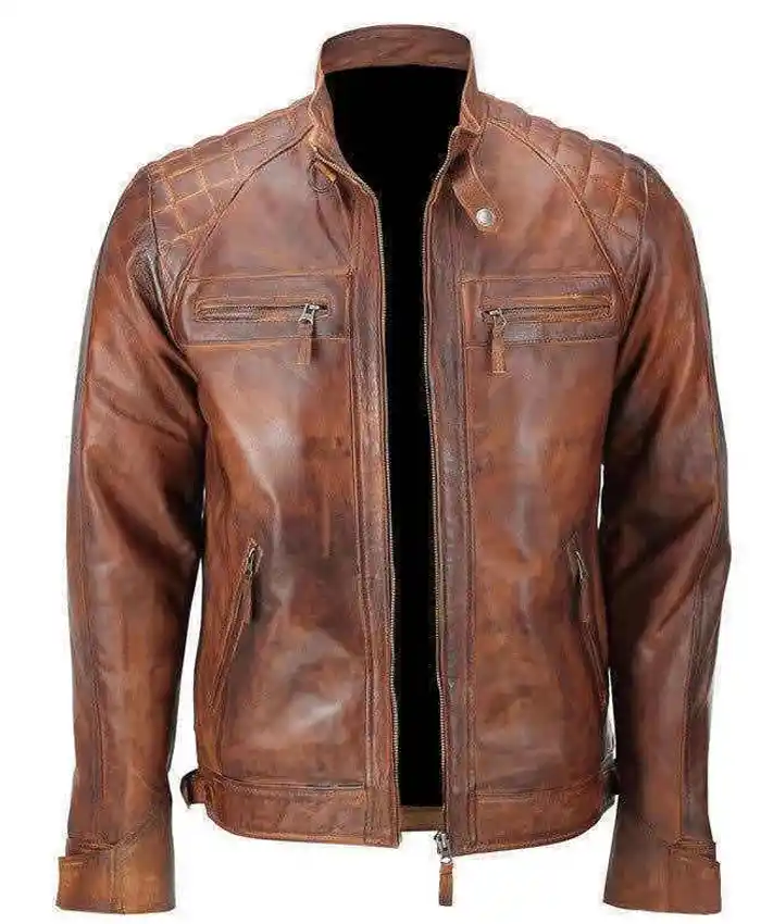 Leather Jacket Brown Distressed Classic Diamond